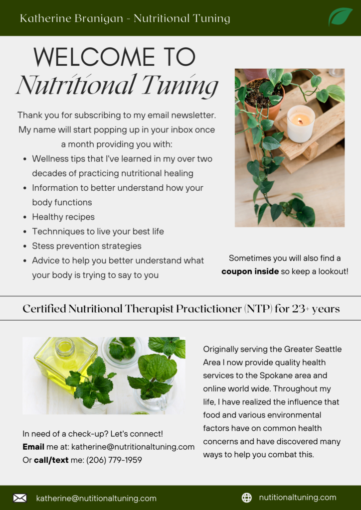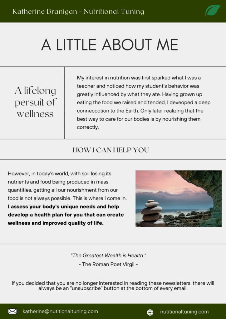 Result: Carefully appealing to Katherine’s target audience which are mainly people over the age of 50 and with an already established interest in wellness, I intentionally used a more gentle, informative tone – not one that was pushy or trying to sell something too strongly. You will notice I included only one small CTA at the bottom for this reason. The welcome letter was sent to everyone on her newly created email list and it will be sent to anyone else who signs up for her newsletters on her website.